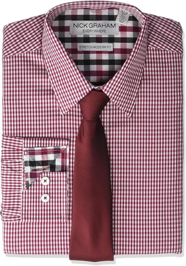 Be the first to review “Nick Graham mens Stretch Modern Fit Gingham Dress Shirt and Solid Tie Set” Cancel reply